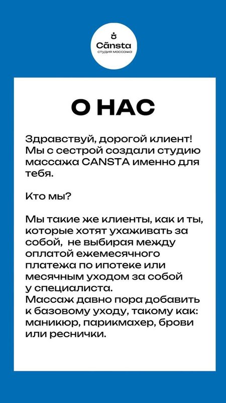 Кто мы?!?!? Мы такие же клиенты, как и ты, которые хотят ухаживать за собой, не выбирая между оплатой ежемесячного платежа по ипотеке или месячным уходом за собой у специалиста. Массаж давно пора добавить к базовому уходу, такому как маникюр, парикмахер, брови или реснички.
